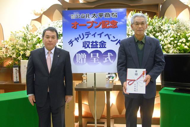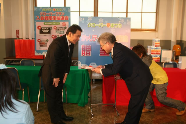 平成22年1月23日 白石東地区町内会連合会 板垣会長さまにチャリティ収益金贈呈式をおこないました。